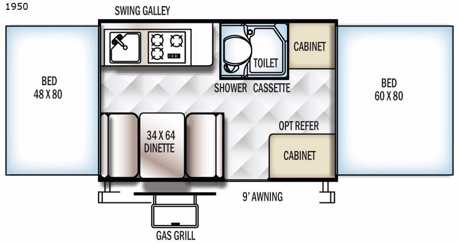 Measuring approximately 12 feet in length, this tent trailer is easy to tow and maneuver, making it perfect for both seasoned travelers and those new to RVing. Weighing in at just 907 kilograms, it’s lightweight enough to be towed by most vehicles, yet sturdy enough to provide a reliable and secure base for your camping adventures. The Rockwood Freedom Series 1950 is thoughtfully designed to maximize space and functionality, ensuring you have everything you need while on the road.