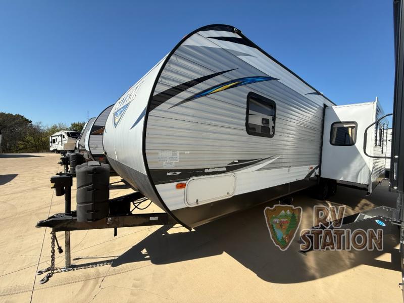 Weighing in at just 2,902 kilograms, this travel trailer is both lightweight and durable, making it easy to tow without compromising on stability or safety. The thoughtfully designed interior features a well-equipped kitchen, complete with modern appliances and ample storage, allowing you to prepare delicious meals with ease. The inviting living area is perfect for unwinding after a day of exploration, while the comfortable sleeping arrangements ensure a restful night's sleep for everyone on board.