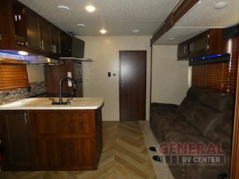 Step inside and discover a welcoming interior that can comfortably sleep up to five people. The cleverly designed layout includes one slide-out, providing extra room to relax and unwind after a day of exploring. The living area is cozy and inviting, with plenty of seating for everyone to gather and share stories. The kitchen is fully equipped with modern appliances, making it easy to whip up delicious meals on the go. Plus, the bathroom offers all the conveniences of home, ensuring you stay fresh and comfortable throughout your journey.