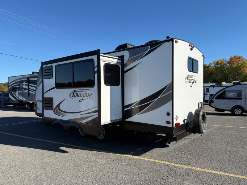 Inside, the Imagine 2150RB boasts a thoughtfully designed layout that maximizes space and functionality. The interior features high-quality finishes and modern amenities, providing a comfortable and inviting atmosphere. The well-equipped kitchen includes a refrigerator, microwave, and stove, allowing you to prepare meals with ease. The living area is designed for relaxation, with ample seating and a flat-screen TV for entertainment. The bedroom offers a cozy retreat with a comfortable bed and plenty of storage space for your belongings.