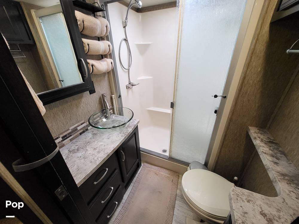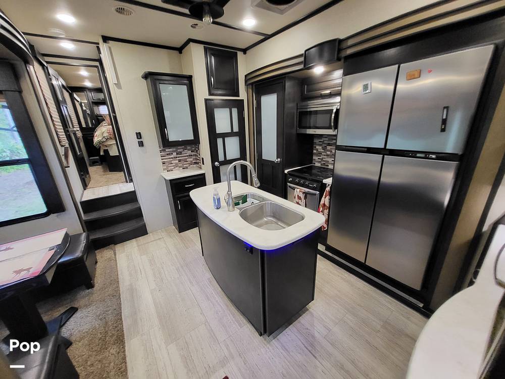 Inside, the Momentum 376TH is designed to sleep up to six people comfortably, ensuring that everyone has a cozy place to rest after a day of exploration. The interior is thoughtfully laid out, featuring high-quality furnishings and modern amenities that make life on the road a pleasure. The kitchen is equipped with top-of-the-line appliances, including a refrigerator, stove, and microwave, allowing you to prepare meals with ease. The living area is spacious and inviting, with plush seating and a state-of-the-art entertainment system, perfect for relaxing evenings.