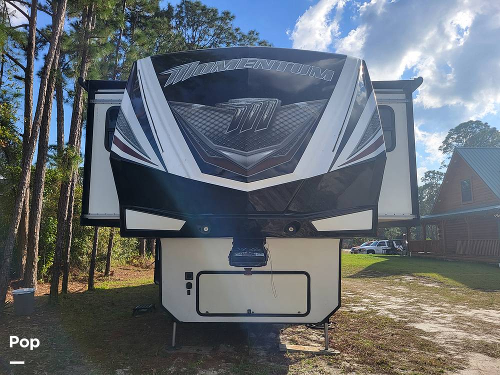 Introducing the 2017 Grand Design Momentum 376TH Fifth Wheel, a luxurious and spacious RV designed for those who seek adventure without compromising on comfort. This meticulously crafted fifth wheel offers a perfect blend of style, functionality, and durability, making it an ideal choice for families and groups looking to explore the great outdoors. With a length of 34 feet, this RV provides ample space for all your travel needs while maintaining a manageable size for easy towing and maneuverability.