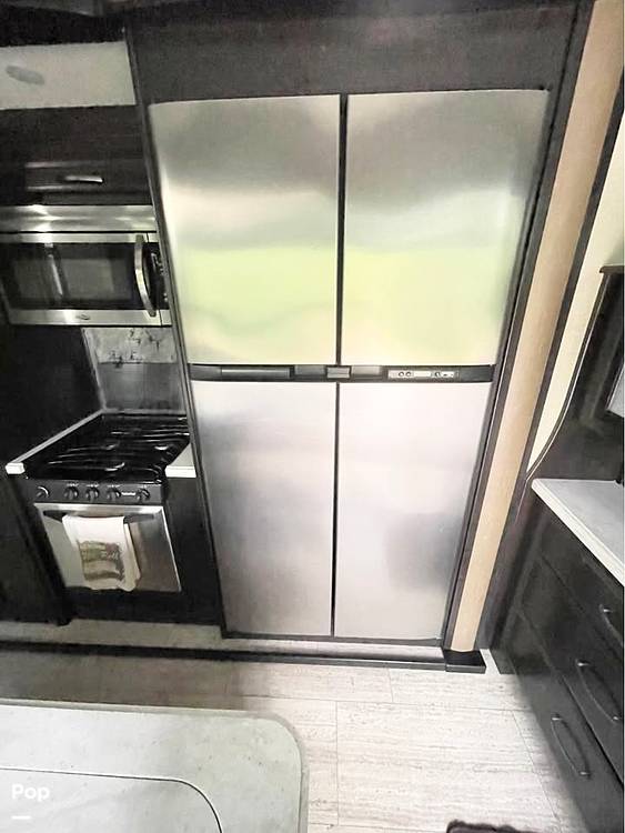 Step inside and be greeted by a beautifully designed interior that combines functionality with elegance. The living area is perfect for unwinding after a day of exploration, featuring plush seating and a state-of-the-art entertainment system. The kitchen is a chef's dream, equipped with modern appliances, ample counter space, and a large refrigerator to keep your culinary creations fresh. The dining area provides a cozy spot to enjoy meals together, making every meal feel like a special occasion.