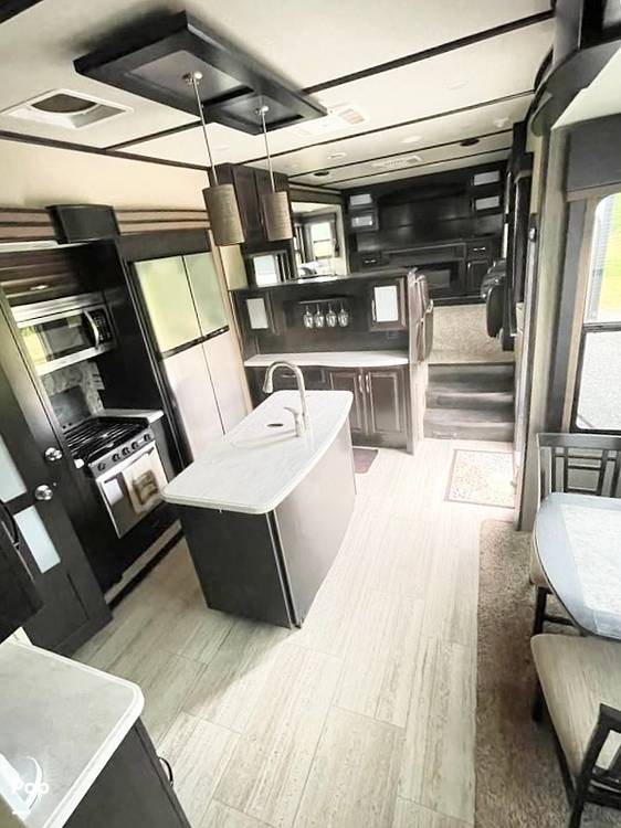 The Grand Design Momentum 376TH doesn't just impress indoors; it also boasts exceptional exterior features. With its robust construction and advanced suspension system, this RV is built to handle any adventure you throw its way. The spacious garage area is perfect for storing your outdoor gear, whether it's bikes, kayaks, or other toys. Plus, the exterior awning creates a perfect outdoor living space, ideal for enjoying the great outdoors in comfort.