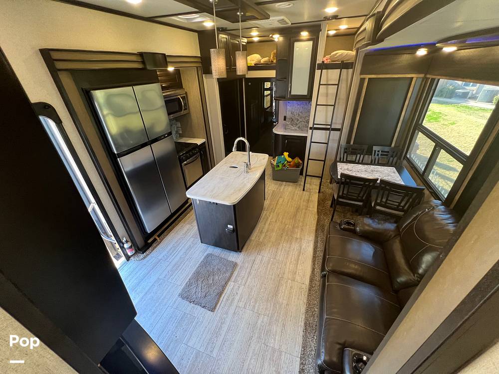 Measuring an impressive 36 feet in length, the Grand Design Momentum provides ample space for relaxation and entertainment. Inside, you'll find a thoughtfully designed interior that combines modern amenities with a cozy atmosphere. The well-equipped kitchen, complete with high-end appliances, allows you to prepare delicious meals on the go. The living area offers plush seating and a state-of-the-art entertainment system, perfect for unwinding after a day of adventure. The spacious bathroom and private sleeping quarters ensure that everyone has their own space to relax and recharge.