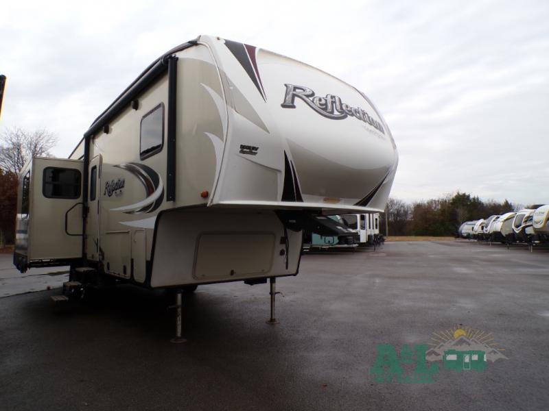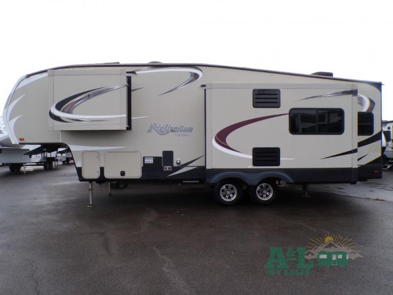 The Reflection 27RL features three slide-outs, significantly enhancing the living space and providing a roomy, open feel. Inside, you'll find accommodations to sleep four comfortably, ensuring restful nights after a day of exploration. The interior is thoughtfully designed with high-quality finishes and modern amenities, creating a welcoming atmosphere that feels like home. The kitchen is equipped with all the essentials, allowing you to prepare meals with ease, while the cozy living area is perfect for unwinding.