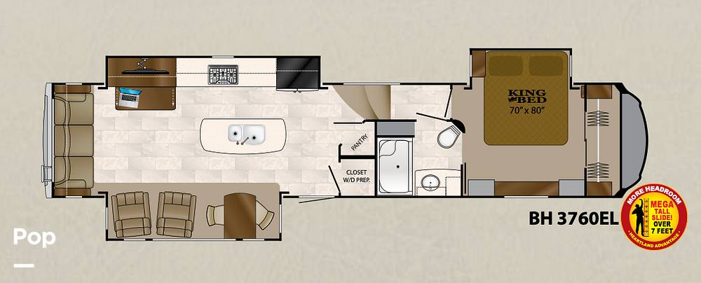 Introducing the 2017 Heartland Bighorn 3760EL Fifth Wheel, a luxurious and spacious RV designed to elevate your travel experience. With a length of 34 feet, this fifth wheel offers ample space and comfort, making it the perfect choice for families or groups seeking adventure without compromising on the comforts of home. Built with precision and attention to detail, the Bighorn 3760EL is a testament to Heartland's commitment to quality and innovation in the RV industry.