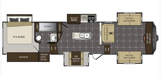 Inside, the Keystone Alpine 3661 FL is thoughtfully designed to accommodate up to six people comfortably. The living area features plush seating and a cozy atmosphere, perfect for unwinding after a day of exploration. The well-appointed kitchen is equipped with modern appliances and ample storage, allowing you to prepare meals with ease. The dining area provides a welcoming space for family meals or gatherings with friends. The sleeping arrangements are equally impressive, with a master bedroom that offers a serene retreat and additional sleeping spaces that ensure everyone has a comfortable place to rest.