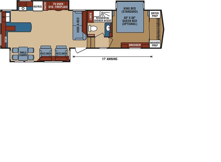The sleeping arrangements are designed for comfort and convenience. The master bedroom offers a cozy queen-sized bed, while additional sleeping spaces include convertible sofas and bunks, ensuring everyone has a restful night. The bathroom is spacious and includes a shower, sink, and toilet, providing all the comforts of home on the road. With its robust construction and thoughtful design, the 2017 KZ Durango Gold G353RKT is your ticket to unforgettable adventures. Don’t miss the opportunity to own this exceptional fifth wheel and create lasting memories on your travels.