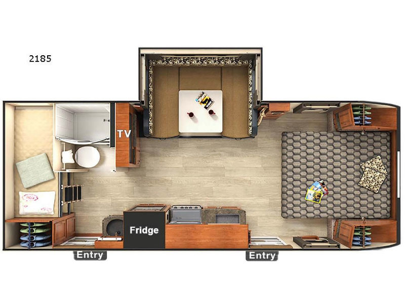Inside, you’ll find a cleverly designed space that can comfortably sleep up to seven people. Whether you're planning a family getaway or a weekend with friends, everyone will have a cozy spot to rest. The single slide-out expands the living area, giving you extra room to relax and enjoy your time indoors. The interior is thoughtfully laid out, with plenty of storage options to keep your gear organized and out of the way. The kitchen is equipped with all the essentials, so you can whip up your favorite meals even when you're miles away from home.