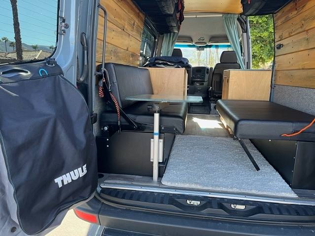 Inside, the Sprinter is thoughtfully designed to accommodate two people, offering a cozy sleeping area that promises restful nights after a day of exploration. The interior is equipped with high-quality materials and finishes, reflecting the renowned craftsmanship of Mercedes-Benz. Essential amenities are seamlessly integrated, including a compact kitchenette, storage solutions, and a well-appointed bathroom, ensuring you have everything you need for extended trips.