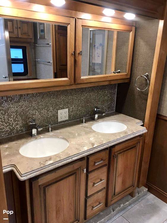 Step inside to find a beautifully appointed living area featuring high-quality furnishings and finishes. The fully equipped kitchen includes modern appliances, making meal preparation a breeze. Enjoy your meals at the elegant dining area, or relax in the plush seating of the lounge, complete with a state-of-the-art entertainment system. The RV's thoughtful layout ensures privacy and convenience, with a master bedroom, additional sleeping areas, and a well-designed bathroom.