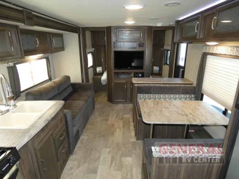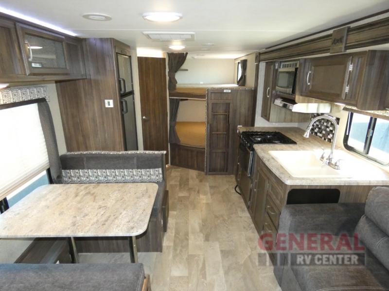 Measuring approximately 26 feet in length, the Apex Ultra-Lite is crafted with a focus on lightweight durability, weighing in at just 2,395 kilograms. This makes it easy to tow while ensuring stability and safety on the road. The thoughtful design includes a well-equipped kitchen, a cozy dining area, and a comfortable living space, all designed to enhance your travel experience. The sleeping arrangements are versatile, with a master bedroom, bunk beds, and convertible sleeping areas to accommodate everyone in your party.