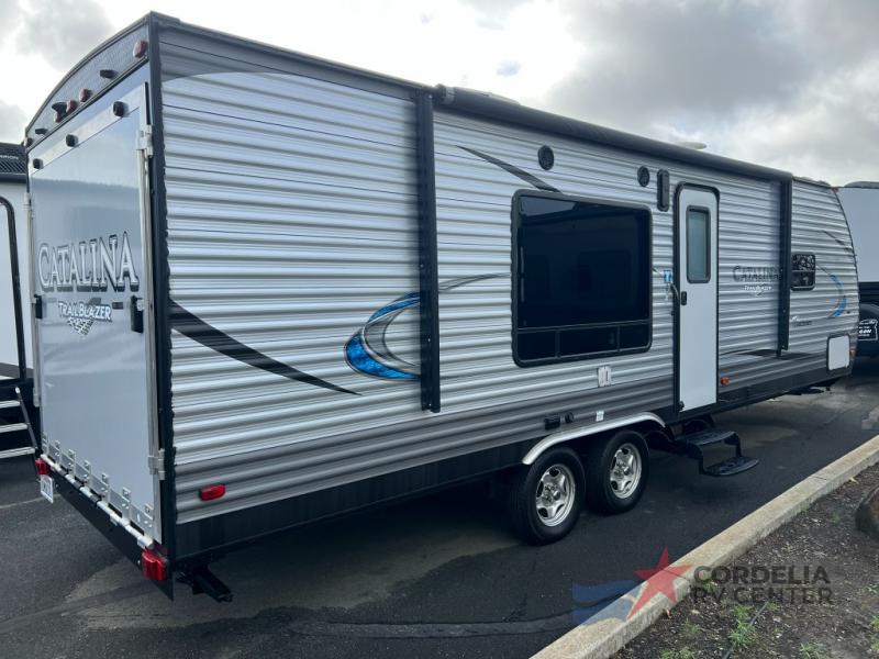 Weighing approximately 2,491 kilograms, the Catalina Trail Blazer 26TH is engineered for easy towing without compromising on stability or safety. This toy hauler is crafted to transport your favorite recreational equipment, providing ample space for motorcycles, ATVs, or bicycles, while still offering a cozy living area. The interior layout is optimized for convenience, featuring a well-equipped kitchen, a functional bathroom, and a comfortable sleeping area, ensuring all the comforts of home while on the road.