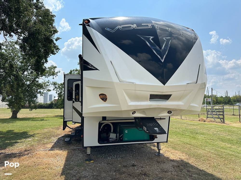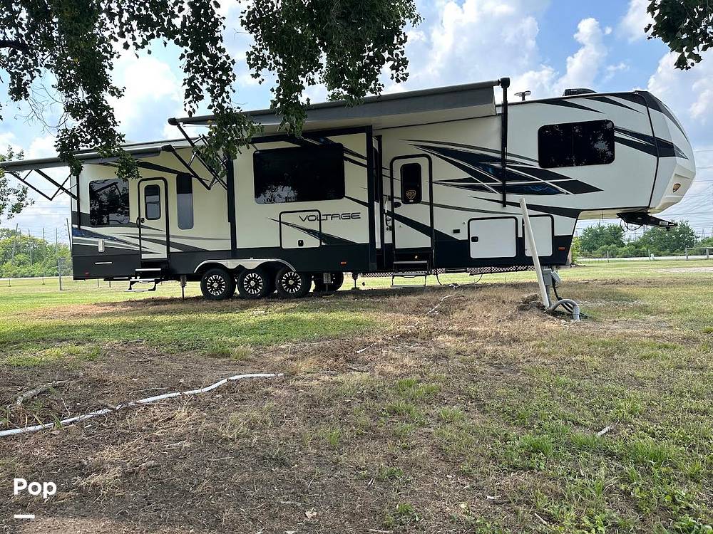 Introducing the 2018 Dutchmen Voltage 3805 Fifth Wheel, a premium RV designed for those who seek adventure without compromising on comfort. This meticulously crafted vehicle offers a spacious and luxurious interior, making it the perfect choice for families or groups of up to seven people. With a length of 35 feet, this RV provides ample space for relaxation and entertainment, ensuring that every journey is as enjoyable as the destination.