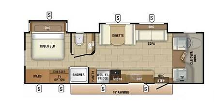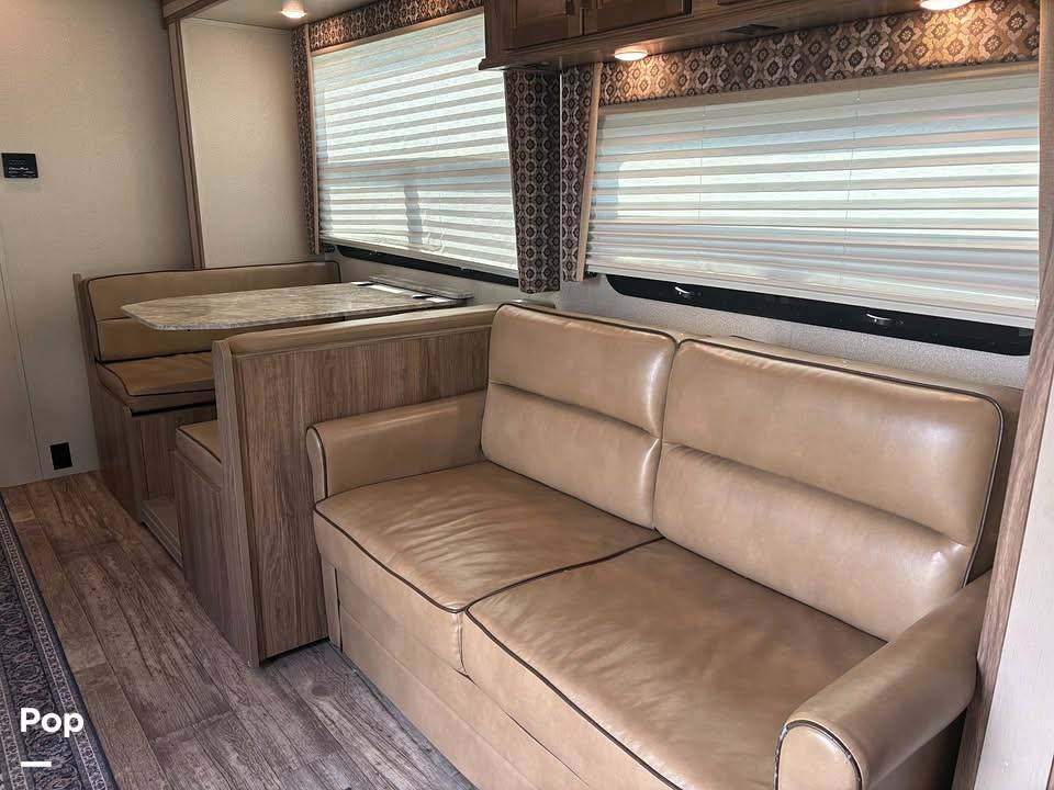 Measuring approximately 28 feet in length, this RV offers a well-designed layout that maximizes space and convenience. The interior features a fully equipped kitchen with modern appliances, a cozy dining area, and a comfortable living space, ensuring that you have everything you need for a memorable trip. The sleeping arrangements include a private master bedroom, a convertible dinette, a sofa bed, and an overhead bunk, providing ample sleeping options for family and friends.