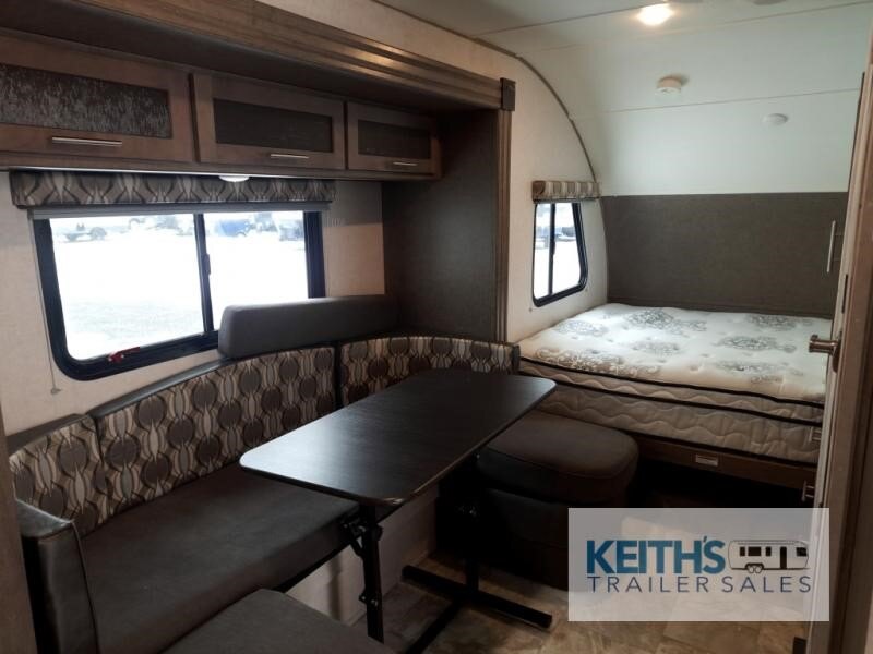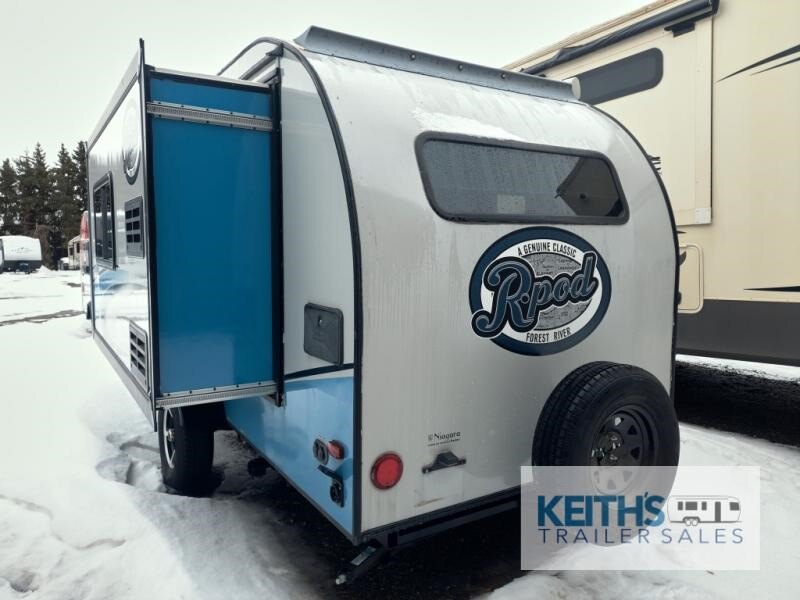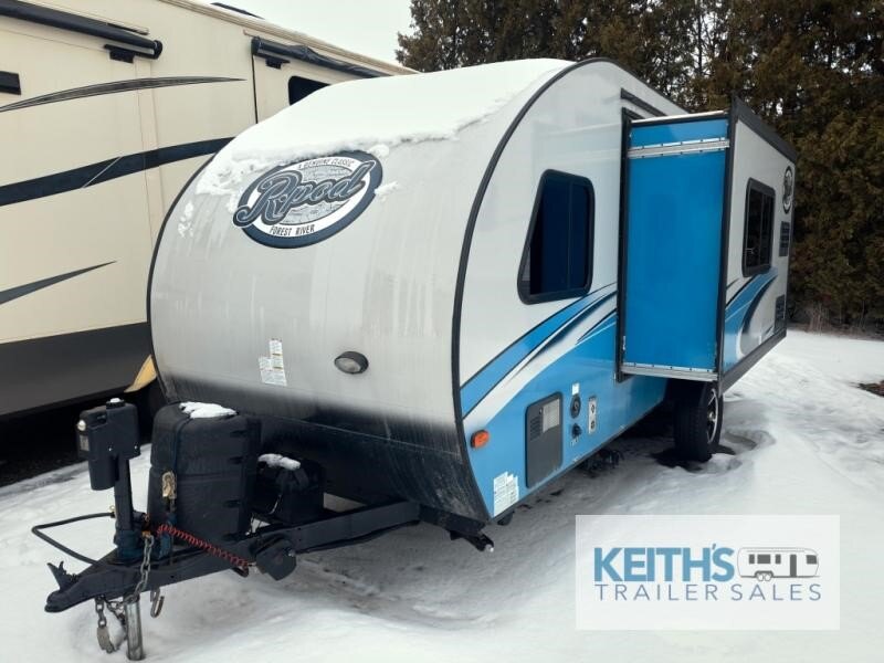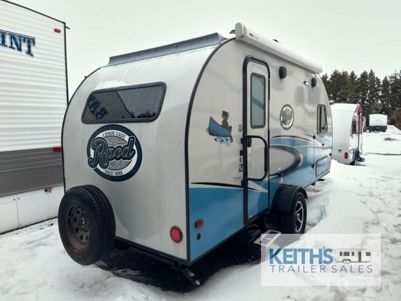 Introducing the 2018 Forest River RV R Pod RP-179, a meticulously crafted travel trailer designed for those who seek adventure without compromising on comfort. This compact yet spacious RV measures 20 feet in length, making it an ideal choice for both seasoned travelers and those new to the RV lifestyle. With a dry weight of approximately 1,400 kilograms, it is lightweight and easy to tow, ensuring a smooth journey to your favorite destinations. Step inside to discover a thoughtfully designed interior that maximizes space and functionality. The R Pod RP-179 features a well-appointed kitchen equipped with a two-burner cooktop, a microwave, and a refrigerator, all seamlessly integrated to provide a home-like cooking experience on the road. The dinette area, which can comfortably seat four, easily converts into an additional sleeping space, accommodating up to four occupants in total. The main sleeping area boasts a cozy queen-sized bed, ensuring restful nights after a day of exploration. The exterior of the R Pod RP-179 is as impressive as its interior, featuring a durable fiberglass body with an aerodynamic design that enhances fuel efficiency. The RV is equipped with a 113-liter fresh water tank, a 113-liter gray water tank, and a 113-liter black water tank, providing ample capacity for extended trips. Additional features include an outdoor shower, a retractable awning for shaded relaxation, and ample storage compartments to stow away all your travel essentials. Whether you're embarking on a weekend getaway or a cross-country adventure, the 2018 Forest River RV R Pod RP-179 promises reliability, comfort, and the freedom to explore at your own pace.