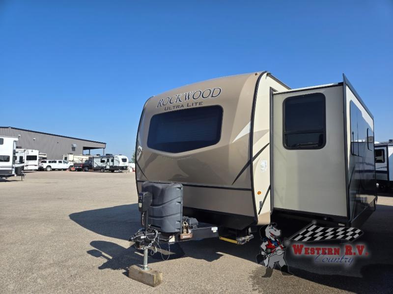 Measuring approximately 24 feet in length, the Rockwood Ultra Lite is designed for easy towing and maneuverability, making it ideal for both seasoned RV enthusiasts and newcomers alike. Weighing in at just 2,871 kilograms, it strikes the perfect balance between lightweight convenience and robust construction. The thoughtful layout maximizes space, providing a cozy living area, a fully equipped kitchen, and a comfortable sleeping arrangement. The interior is designed with modern amenities and high-quality finishes, ensuring a luxurious experience on the road.