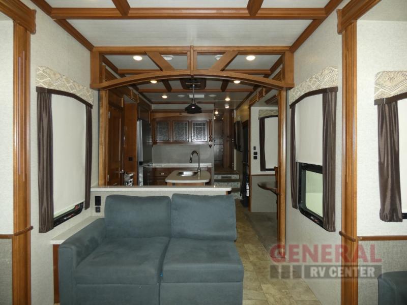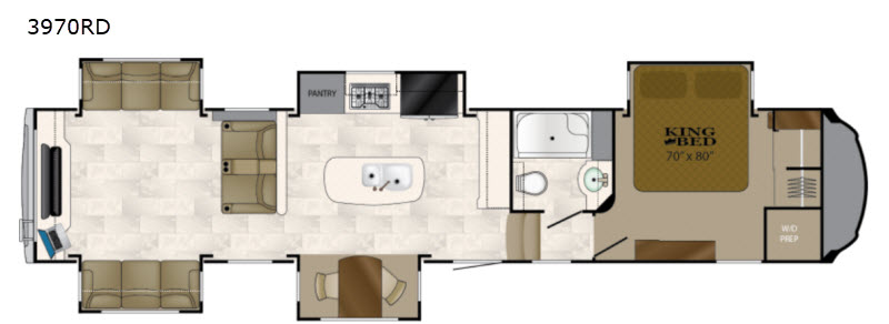 The Heartland Bighorn 3970RD features five expansive slide-outs, significantly enhancing the living space and creating an open, airy atmosphere. This model is thoughtfully designed to accommodate up to six guests comfortably, making it ideal for family vacations or trips with friends. The interior is meticulously crafted with high-quality materials and finishes, offering a sophisticated and inviting environment. The well-appointed kitchen, complete with modern appliances, allows for convenient meal preparation, while the spacious living area provides a perfect setting for relaxation and socializing.