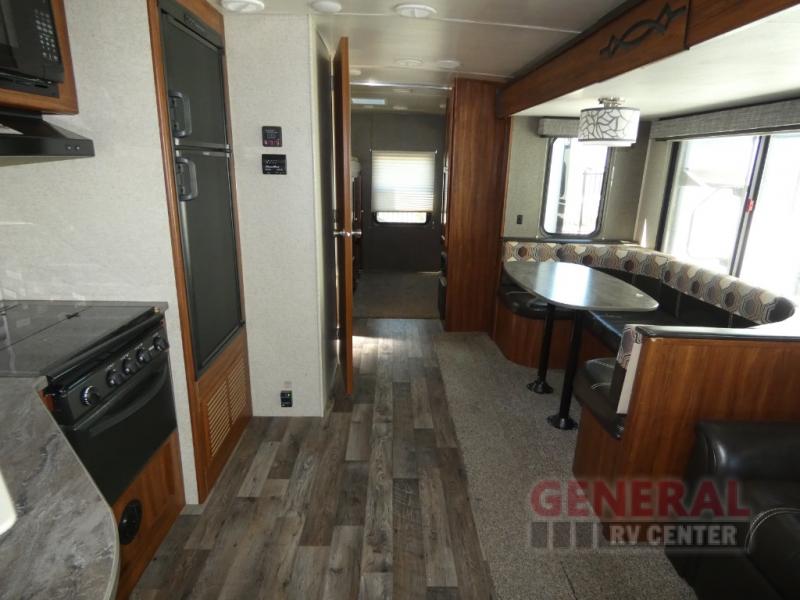 The Heartland Wilderness 3150DS features two expansive slide-outs, significantly enhancing the interior living space to ensure a comfortable and inviting environment. This travel trailer is thoughtfully designed to accommodate up to seven occupants, making it perfect for family adventures or group excursions. The intelligently laid-out floor plan includes a well-appointed kitchen, a cozy dining area, and a spacious living room, providing all the comforts of home while on the road. The sleeping arrangements are versatile, ensuring a restful night's sleep for everyone.