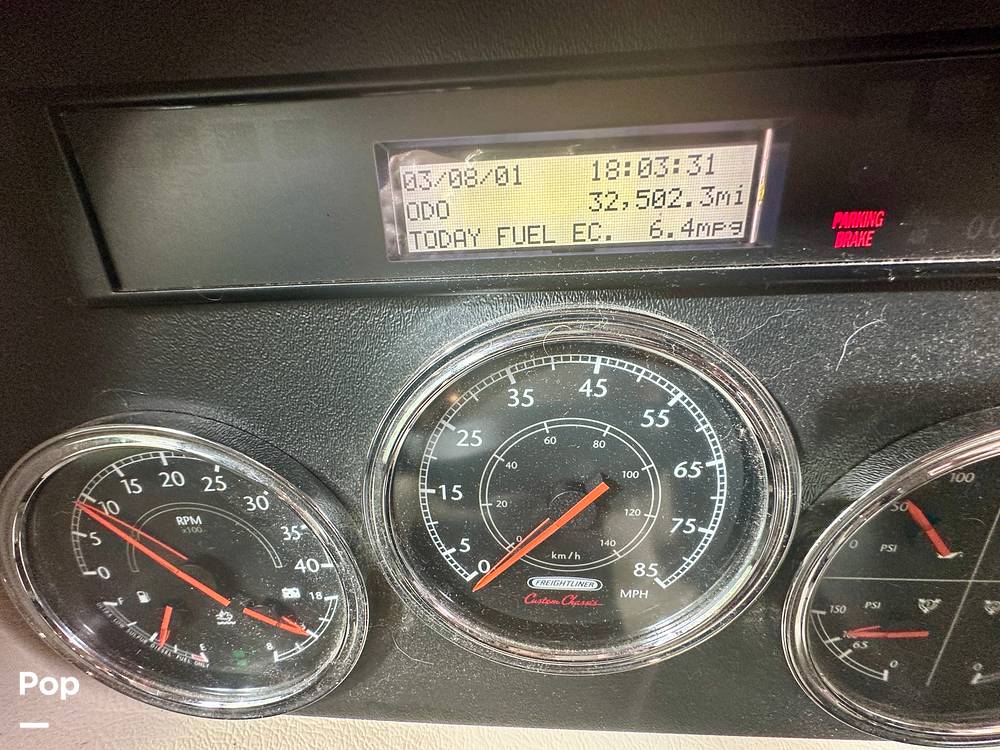 Step inside to find a beautifully appointed living space featuring high-end finishes and modern amenities. The open floor plan includes a fully equipped kitchen with top-of-the-line appliances, ample storage, and a cozy dining area. The plush seating in the living area invites you to relax and unwind, while the entertainment system ensures you stay connected and entertained on the road. The master suite offers a private retreat with a luxurious queen-sized bed, abundant storage, and an en-suite bathroom, providing all the comforts of home.