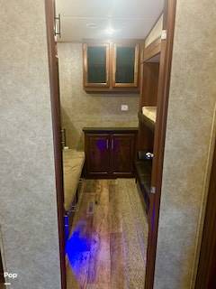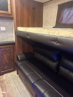 Step inside to find a thoughtfully designed interior that maximizes space and functionality. The Jayco Eagle features a well-appointed kitchen with modern appliances, including a refrigerator, microwave, and oven, making meal preparation a breeze. The living area is perfect for unwinding after a day of adventure, with plush seating and a large entertainment center. The master bedroom offers a cozy retreat with a comfortable bed, while the bunkhouse provides additional sleeping space for the kids or guests.