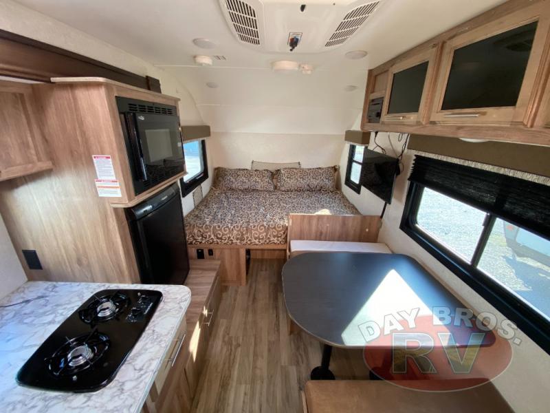 Measuring approximately 16 feet in length, this travel trailer is easy to tow and maneuver, making it perfect for both seasoned RV enthusiasts and first-time adventurers. Weighing in at just 1,301 kilograms, it’s lightweight yet sturdy, ensuring a smooth ride wherever your journey takes you. The single slide-out expands your living space, providing a cozy and comfortable environment to relax after a day of exploration. Inside, you'll find sleeping accommodations for up to three people, making it perfect for a couple or a small family.