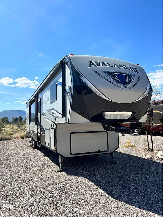 Introducing the 2018 Keystone Avalanche 395BH Fifth Wheel, a remarkable blend of luxury and functionality designed to elevate your travel experiences. This meticulously crafted RV, measuring an impressive 35 feet in length, offers ample space and comfort for families or groups seeking adventure without compromising on the comforts of home. With the capacity to sleep up to 8 people, this fifth wheel is perfect for extended road trips or weekend getaways, ensuring everyone has a cozy place to rest after a day of exploration.