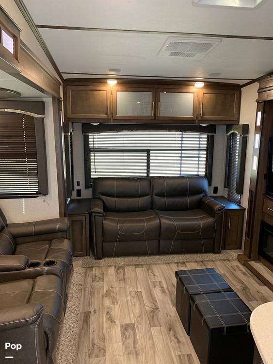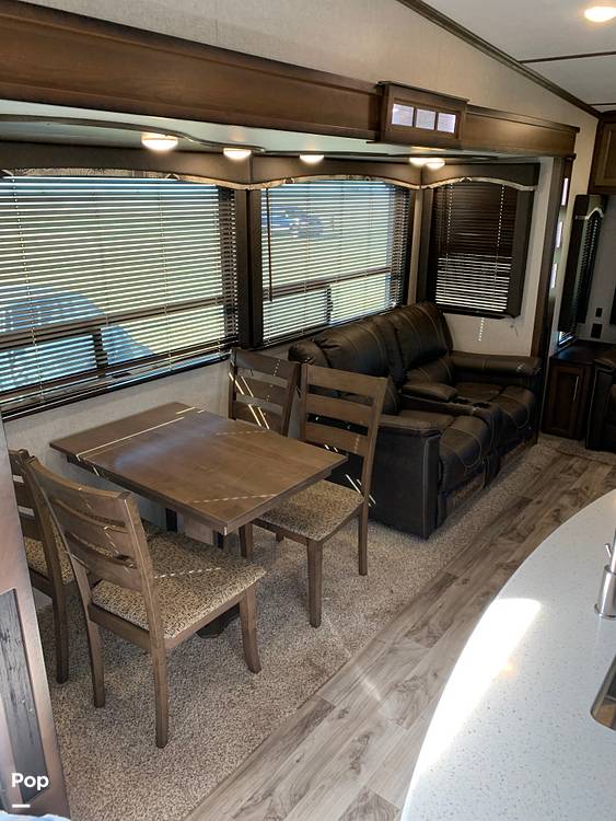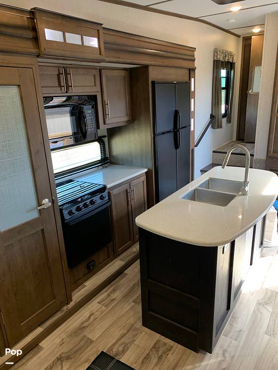 Introducing the 2018 Keystone Cougar 344MKS Fifth Wheel, a meticulously crafted RV designed to elevate your travel experiences. With a length of 32 feet, this fifth wheel offers a perfect blend of comfort, functionality, and style, making it an ideal choice for both seasoned travelers and those new to the RV lifestyle. Its spacious interior is thoughtfully designed to accommodate up to four people, ensuring a comfortable and restful journey for all occupants.