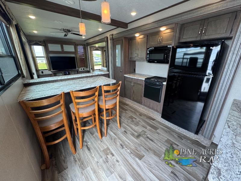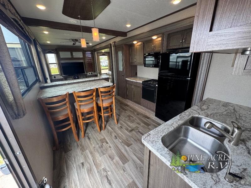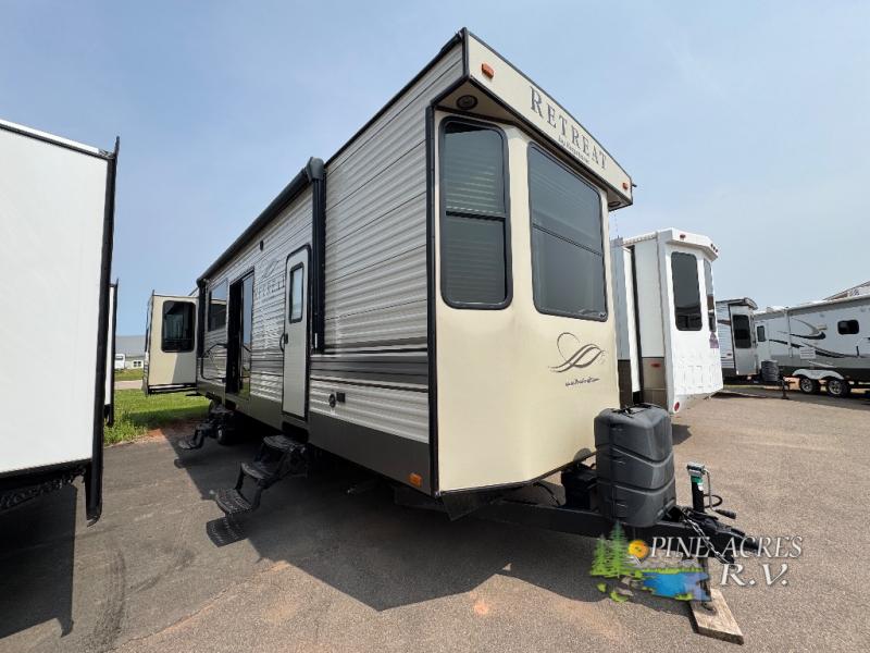This RV comfortably sleeps six, making it ideal for family trips or a getaway with friends. The interior is thoughtfully designed to maximize comfort and functionality. Whether you're lounging in the living area or cooking up a storm in the kitchen, you'll feel right at home. The Retreat 391RDEN is all about creating memorable experiences, whether you're parked at a scenic campsite or exploring new destinations.