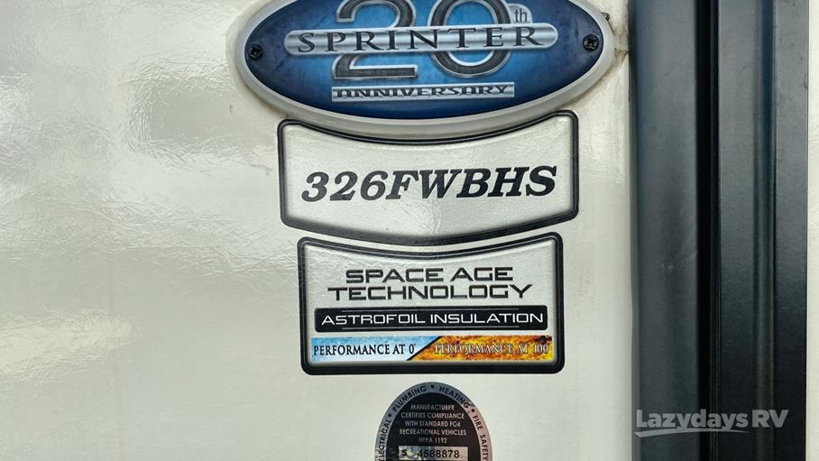 Introducing the 2018 Keystone RV Sprinter 326FWBHS Fifth Wheel, a remarkable blend of comfort, space, and functionality, designed to elevate your travel experiences. This meticulously crafted RV measures an impressive 32 feet in length, providing ample room for family and friends. With a substantial weight of 4,873 kilograms, this fifth wheel offers a robust and stable foundation for your adventures, ensuring a smooth and secure journey wherever the road takes you.
