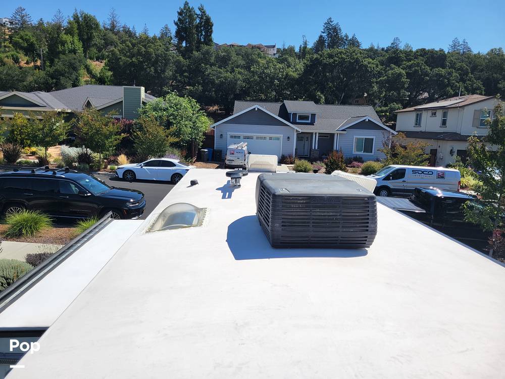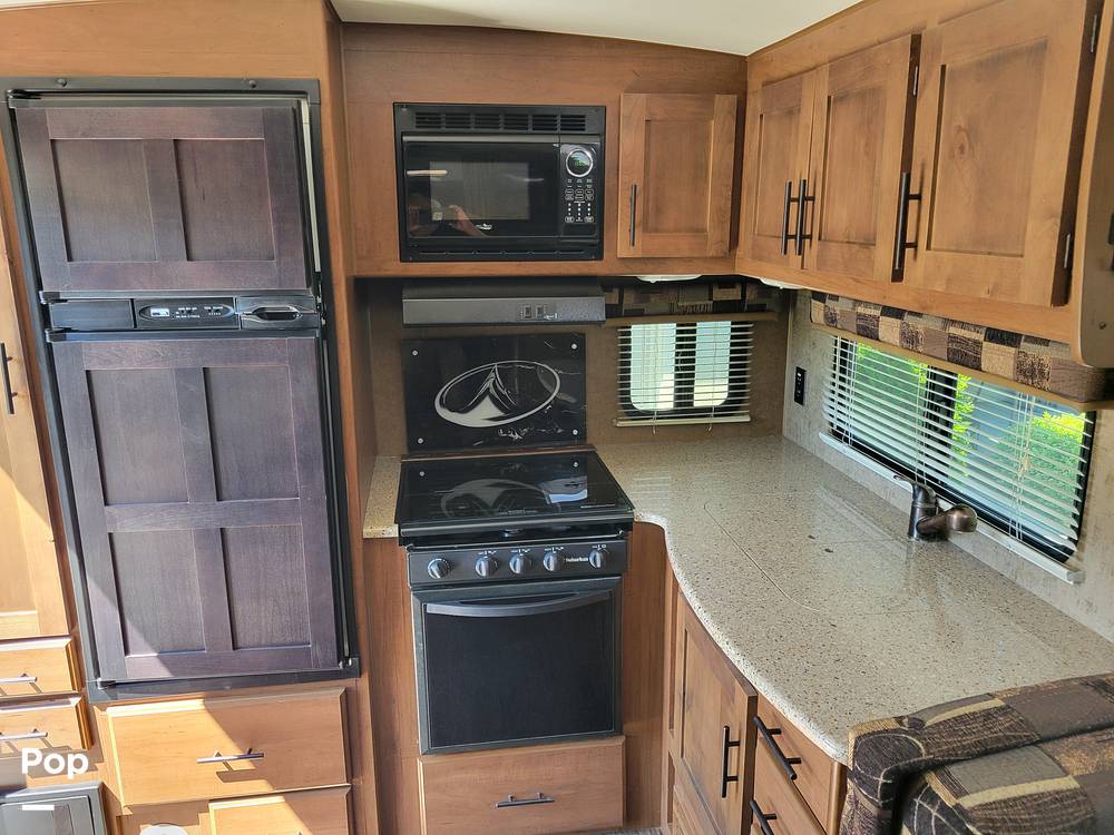 Step inside to find a thoughtfully designed living area, featuring a fully-equipped kitchen with a refrigerator, stove, and microwave, making meal prep a breeze. The dining area is perfect for sharing meals or planning your next adventure. The sleeping arrangements include a comfortable queen-sized bed, a convertible dinette, and a cozy sofa bed, ensuring a restful night's sleep for everyone. Ample storage throughout the trailer means you can bring along all your essentials and more.