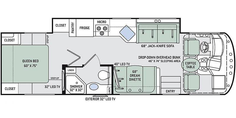 Measuring an impressive 26 feet in length, this RV offers ample space for relaxation and entertainment. Inside, you’ll find a well-appointed living area complete with a convertible sofa, a dinette, and a fully equipped kitchen featuring modern appliances. The private master suite, bunk beds, and additional sleeping areas ensure everyone has a cozy place to rest. Thoughtful storage solutions throughout the RV make it easy to bring along all your essentials and more.