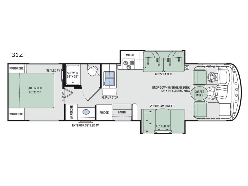 This RV boasts a substantial fuel capacity of 303 liters, ensuring that you can embark on long journeys with fewer stops, allowing you to focus on the joy of the open road. The Windsport 31Z is engineered for efficiency and performance, making it a reliable choice for both short getaways and extended trips. Its robust design and thoughtful features make it a standout in its class, offering a seamless blend of practicality and luxury.