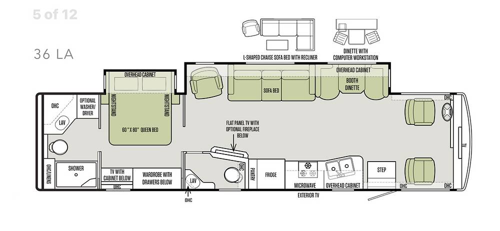 Beyond its stunning interior, the Tiffin Allegro Open Road 36LA is packed with features to enhance your travel experience. Stay entertained with the flat-screen TV and surround sound system, and enjoy the convenience of a full bathroom with a shower. With ample storage space and thoughtful amenities, this RV is ready to take you wherever your heart desires. Don't miss the chance to own this exceptional motorhome and create memories that will last a lifetime. Adventure awaits!