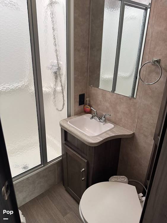 Measuring approximately 22 feet in length, this RV is compact enough to navigate through tight spots yet spacious enough to comfortably sleep up to six people. Inside, you'll find a well-appointed interior featuring a cozy sleeping area, a fully equipped kitchen with a refrigerator, microwave, and stove, and a bathroom with a shower. The living area is designed for relaxation, with a dinette that easily converts into a bed and a sofa that offers additional sleeping space. Plus, the overhead bunk provides a fun and cozy spot for kids or extra guests.