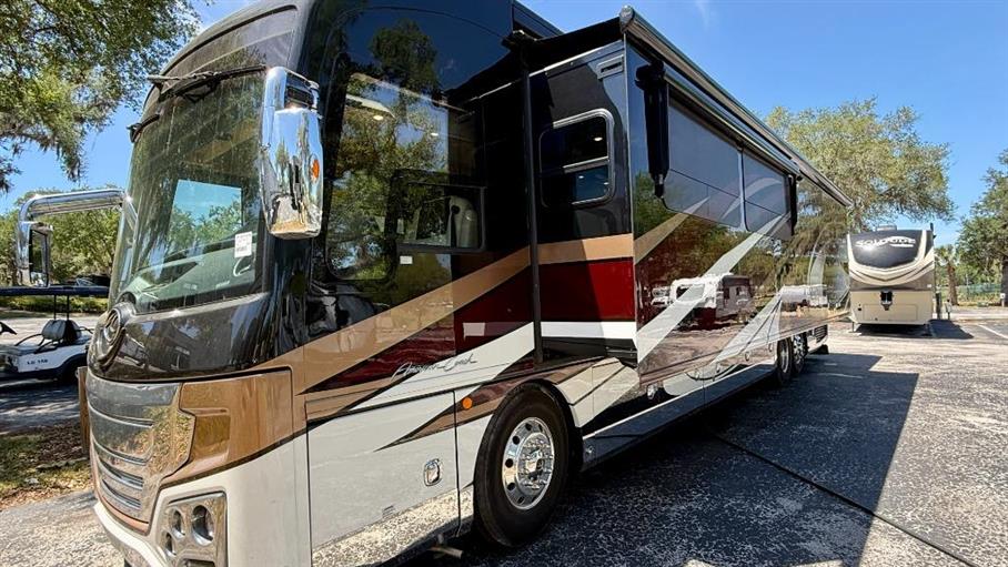 Discover the ultimate in luxury travel with the 2019 American Eagle 45A Class A motorhome. This exquisite RV, with just 40,602 kilometers on the odometer, is your ticket to adventure without sacrificing comfort. Measuring an impressive 38 feet in length, this motorhome offers ample space and elegance, making it the perfect choice for families or groups seeking a premium travel experience.