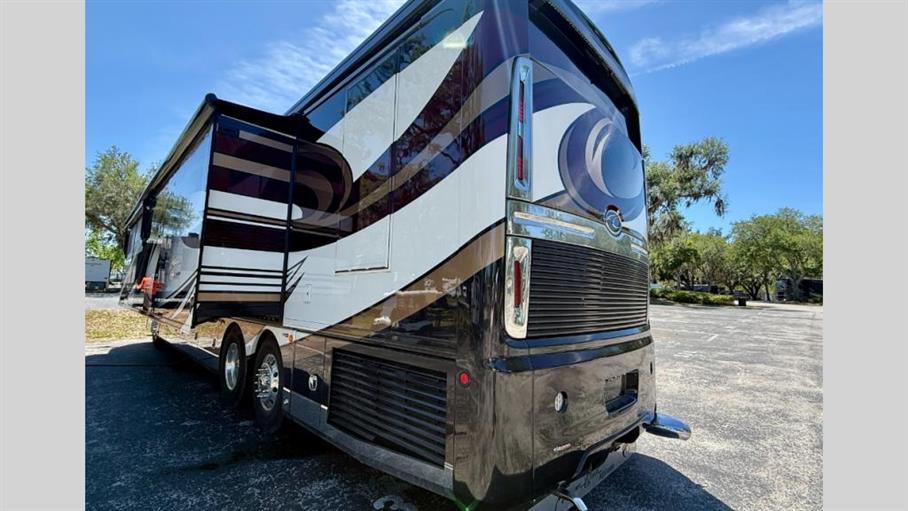 The American Eagle 45A features three expansive slide-outs, dramatically increasing your living space at the touch of a button. Inside, you'll find a beautifully appointed interior that comfortably sleeps six, ensuring everyone has a cozy place to rest after a day of exploration. The sophisticated design includes high-end finishes, plush seating, and a fully equipped kitchen, allowing you to enjoy all the comforts of home while on the road. The spacious bathroom and ample storage further enhance your travel experience, making long journeys a breeze.