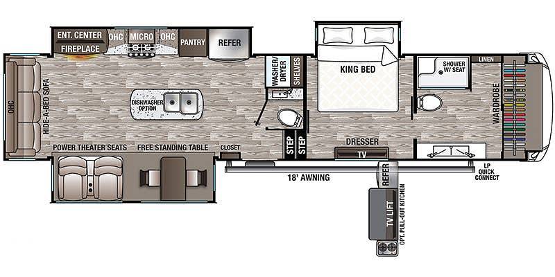 The Cedar Creek Hathaway 38FBD is not just about comfort; it's also about convenience. With ample storage space, you can bring along all your essentials and more. The RV's robust construction and reliable performance ensure a smooth ride, whether you're heading to the mountains or the beach. Don't miss the opportunity to own this exceptional fifth wheel that combines luxury, functionality, and adventure. Start your journey today with the Cedar Creek Hathaway 38FBD and create memories that will last a lifetime.
