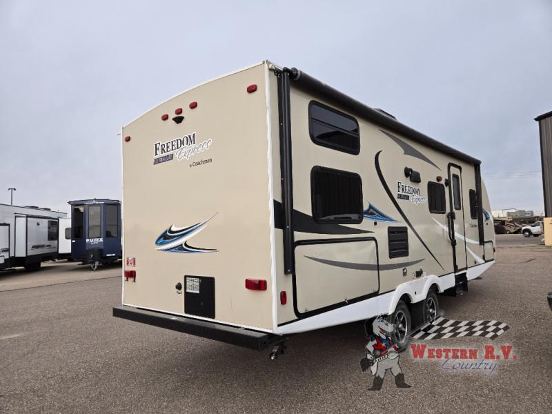 This travel trailer is not only about comfort but also about convenience. With a dry weight of approximately 2,300 kilograms, it is easily towable by most mid-sized vehicles. The ample storage compartments, both inside and out, ensure you have plenty of room for all your travel essentials. Additionally, the RV is equipped with a power awning, LED lighting, and an entertainment system, enhancing your outdoor experience. Whether you're planning a weekend getaway or an extended road trip, the 2019 Coachmen RV Freedom Express 257 BHS Travel Trailer promises a journey filled with comfort and unforgettable memories.