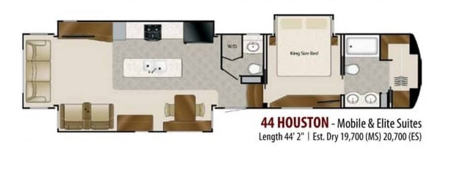 Discover the ultimate in luxury and comfort with the 2019 DRV 44 Houston Fifth Wheel, a masterpiece of design and functionality. Measuring an impressive 37 feet in length, this RV is the perfect blend of spaciousness and elegance, offering an unparalleled travel experience for those who seek the best. With the capacity to comfortably sleep four, it's ideal for families or couples who love to explore the open road without sacrificing the comforts of home.