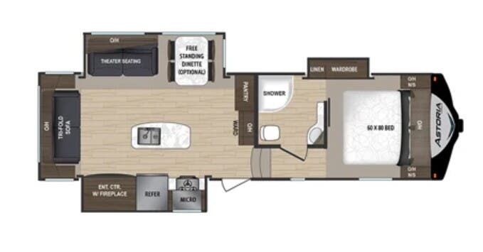 Discover the ultimate blend of comfort and adventure with the 2019 Dutchmen Astoria 2953RLF Fifth Wheel. This meticulously crafted RV is your ticket to exploring the great outdoors without sacrificing the comforts of home. With a spacious interior that comfortably sleeps four, it's perfect for small families or couples seeking a luxurious escape. Measuring 28 feet in length, the Astoria offers ample space for relaxation and entertainment, ensuring every journey is as enjoyable as the destination.