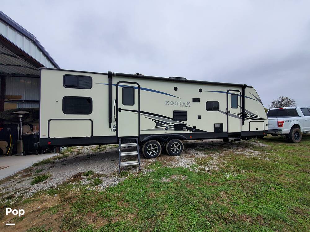 Externally, this travel trailer boasts a durable construction and sleek design, ensuring it stands up to the rigors of travel while turning heads at every stop. With a weight of approximately 3,500 kilograms, the Kodiak 285BHSL is engineered for stability and ease of towing. Additional features include ample storage compartments, allowing you to bring along all your essentials and more. Whether you're embarking on a weekend getaway or an extended road trip, the 2019 Dutchmen Kodiak 285BHSL Travel Trailer is your perfect companion, offering a harmonious blend of luxury and practicality. Embrace the freedom of the open road with this exceptional RV.
