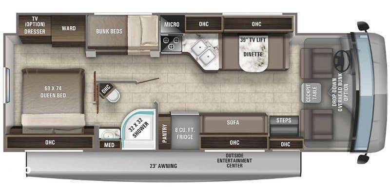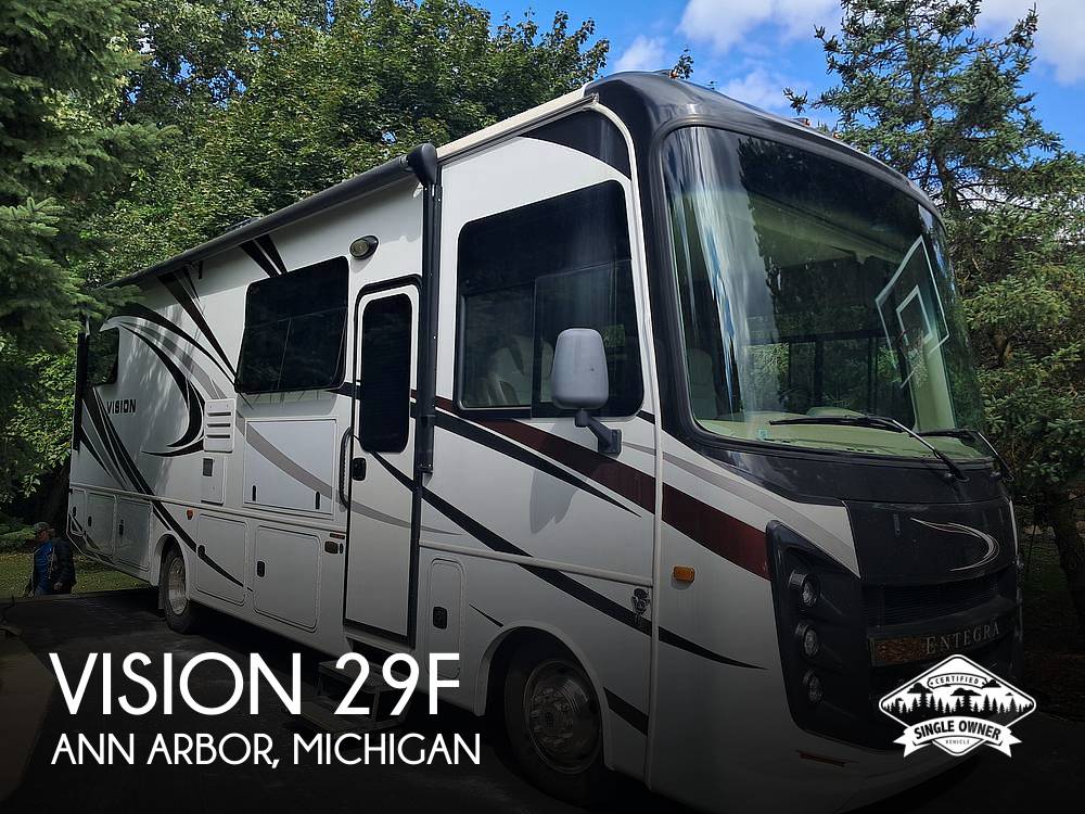 Discover the perfect blend of comfort and adventure with the 2019 Entegra Vision 29F Class A motorhome. This exceptional RV is designed to accommodate up to eight people, making it ideal for family trips or group getaways. With a length of 27 feet, the Vision 29F offers a spacious interior that ensures everyone travels in style and comfort.