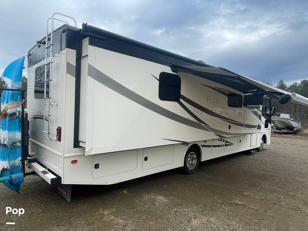 The Fleetwood Flair 35R is engineered for convenience and ease of use, featuring a robust engine and advanced driving technology for a smooth and reliable journey. The exterior is equally impressive, with ample storage compartments and a sleek design that enhances both aesthetics and aerodynamics. Whether you're embarking on a cross-country adventure or a weekend retreat, this motorhome offers the perfect balance of luxury and practicality, ensuring every journey is as enjoyable as the destination. Embrace the freedom of the open road with the 2019 Fleetwood Flair 35R, where every detail is crafted to enhance your travel experience.