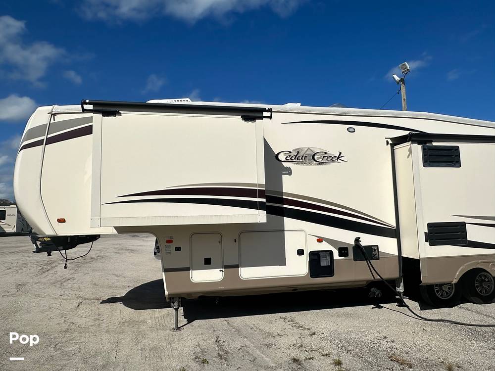 Introducing the 2019 Forest River Cedar Creek 36CK2 Fifth Wheel, a luxurious and spacious retreat on wheels designed for those who seek both adventure and comfort. This meticulously crafted RV spans an impressive 32 feet in length, offering ample space for relaxation and entertainment. With its elegant design and high-quality finishes, the Cedar Creek 36CK2 is perfect for families or couples looking to explore the great outdoors without sacrificing the comforts of home.