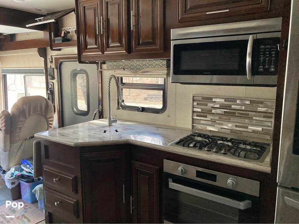 Step inside to find a beautifully appointed interior featuring high-quality finishes and thoughtful design. The spacious living area is perfect for relaxing after a day of exploration, with plush seating and a large flat-screen TV for entertainment. The fully equipped kitchen boasts modern appliances, including a refrigerator, microwave, and stove, making it easy to prepare delicious meals on the go. The dining area is perfect for enjoying meals together or planning your next adventure.