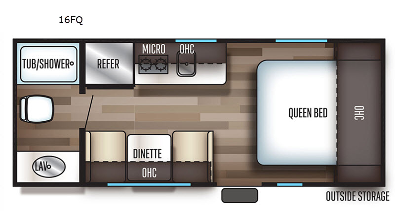 Step inside and you'll find a cozy interior that feels like a home away from home. The Wolf Pup 16FQ features a comfortable queen-sized bed, a fully equipped kitchen with a fridge, microwave, and two-burner stove, and a surprisingly roomy bathroom with a shower. The dinette area is perfect for meals or game nights, and it even converts into an extra sleeping space if needed. With plenty of storage options, you can bring along all your essentials without feeling cramped.