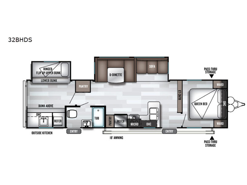 Measuring an impressive 29 feet in length, the Salem 32BHDS is expertly crafted to maximize living space without compromising on mobility. Its thoughtful design includes a dedicated bunk room, ensuring that everyone has their own cozy corner to relax in. The RV's lightweight construction, weighing in at just 3,629 kilograms, makes it easy to tow, allowing you to explore new destinations with ease and confidence.