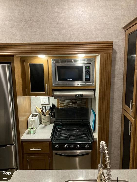Measuring an impressive 34 feet in length, the Sabre 36 FRP provides ample space for both relaxation and entertainment. The thoughtfully designed layout includes a well-appointed kitchen, complete with modern appliances and generous storage, making meal preparation a breeze. The living area is equipped with plush seating and a state-of-the-art entertainment system, creating a cozy atmosphere for unwinding after a day on the road. The elegant design and high-quality finishes throughout the RV reflect Forest River's commitment to excellence and attention to detail.